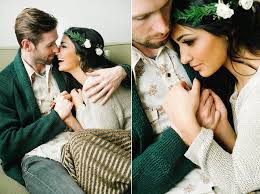 Si el clima te hace decantarte por un escenario interior, funcionan muy bien los ambientes cálidos y acogedores con decoraciones típicas de la época, como una chimenea o un romántico picnic al fuego de ésta con chocolate caliente y unas manitas a cuadros. Muchas veces, sin embargo, con unos pequeños detalles muy comunes, como un sofá y una mesa de centro adornada con flores típicas de la época (ranúnculos, flor de algodón, cardos, bayas y cedro, etc) o portales dorados que dan un aire cálido y acogedor al ambiente, se pueden hacer grandes cosas y pueden quedar muy sencillas, pero preciosas. Si utilizas un espacio con una pared blanca, para romper la frialdad de ésta, puedes valerte de unas coronas navideñas de cedro natural que, junto a una guirnalda de pequeñas lucecitas blancas, le puede dar un aire mas romántico a la sesión.